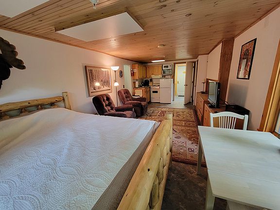 This mountain-side condo is your gateway to year-round outdoor adventure, perfectly situated for skiing, biking, and embracing the great outdoors. Nestled right by the Snubber mid-station chairlift, this condo offers unparalleled access to skiing and snowboarding during the winter months. Imagine waking up, stepping out your door, and hitting the slopes with ease. No need to haul your equipment around; there's a convenient ski locker right next to the lift. Grab your skis or snowboard, and you're moments away from exhilarating runs. With two parking passes, there's ample space for your crew or your biking gear when the snow melts away. Whether you're heading to the mountain or hitting the trails, you've got room for all your gear. Inside, you'll find a great studio layout with a charming log bed and a handy twin Murphy bed. It's fully furnished, so you can kick back after a day of adventure. Step out onto your nature-loving deck and take in the breathtaking mountain views. It's the perfect spot to sip your morning coffee or unwind with a cold drink after a day of outdoor excitement. This condo is your ticket to endless outdoor thrills, from skiing down powdery slopes in the winter to hitting the biking trails when the snow melts away. It's not just a place to live; it's a basecamp for your next adventure.