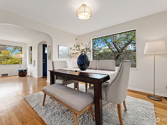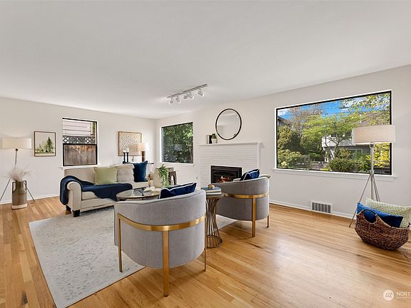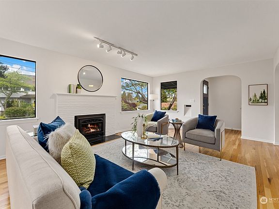 Witness breathtaking cherry tree blossoms outside the light-filled dining room every springtime and be amazed by the trees' spectacular beauty year-round. Cozy up to a favorite novel or lively conversation with friends in front of the handsome gas fireplace, perfect for unwinding and spending quality time with loved ones. Grab a delicious pastry and espresso from Petit Pierre or Fresh Flours nearby to add a touch of culinary delight to your morning routine. This fantastic Phinney home will charm you with an engaging floorplan and proximity to all that this vibrant neighborhood offers. Beautifully maintained hardwood floors, newly painted interior, updated kitchen, recently built 2-car garage and more await you. Inviting. Winsome. Lively.