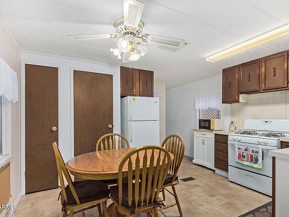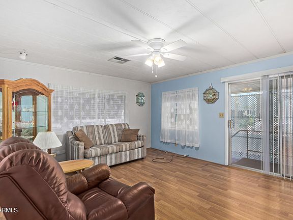 Lovely 2 bedroom, 1 bath Mobile home in gated 55+ adult community. This home features a new A/C, new Hot water heater, Roof redone this year, and extra add on office not included in sq footage. Some furniture to stay. Community offers pool, fitness room, club house, laundry area, billiards, bingo, shuffleboard, horseshoe court, pet friendly with a dog park and a free RV storage area, tons of activities and more. Enjoy the mountain views and central location. Partially furnished. Close to shops/dining, hospitals and Hwy 60.