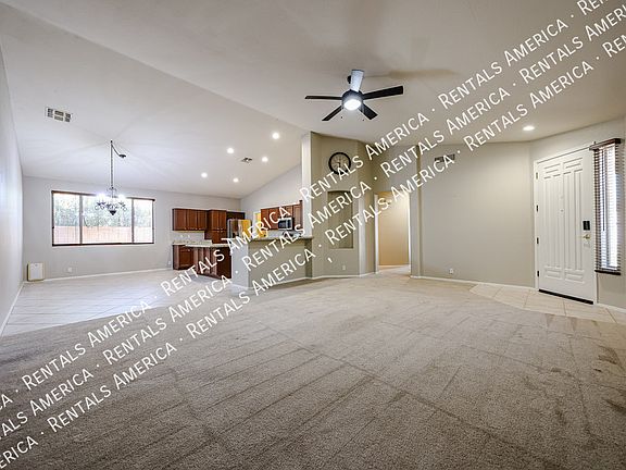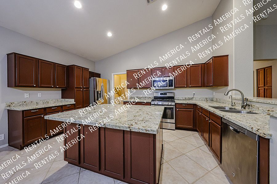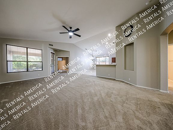 You found the one! Attractive 3 bedroom, 2 bath home in Dobson Place community. Split floorplan, with a spacious, vaulted ceiling great room, separating the primary room from other 2 bedrooms. U-shaped kitchen, plenty of cabinet storage, granite counters, SS appliances, gas stove, and island bar plus large dining table space. Tiled flooring in main traffic areas. Neutral note carpet and wall color. Darker faux wood blinds and ceiling fans throughout. Nice sized, beautifully designed back yard, plus front and backyard maintenance included, 2x per month! Close to popular restaurants, shopping, parks, and other entertainment spots. Very easy access to the freeway. Don't wait! Tour and apply now! One Time Admin Fee: $300, Pet Deposit: $300/pet (if applicable), Service Fee: 2%. $39/month Resident Benefits Package, Helping Heroes Discount Available! Carpet Cats Allowed Ceramic Tile Disposal Dogs Allowed Dryer Garage Pets Allowed Vaulted Ceilings Washer