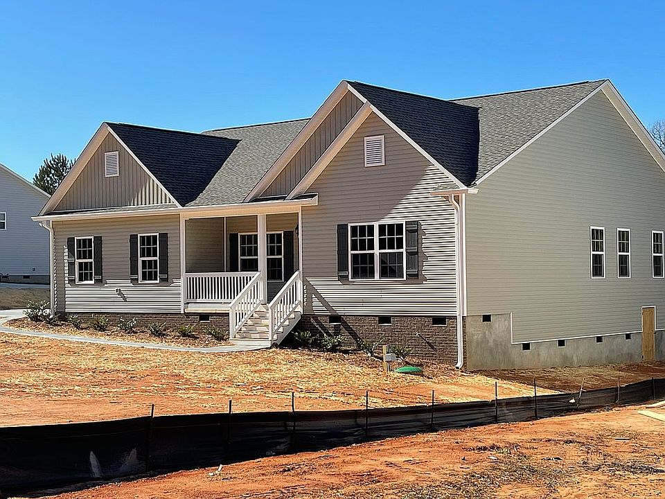 One acre lot 1900 square feet Three beds Two baths Two car garage Screened in porch Walk in pantry