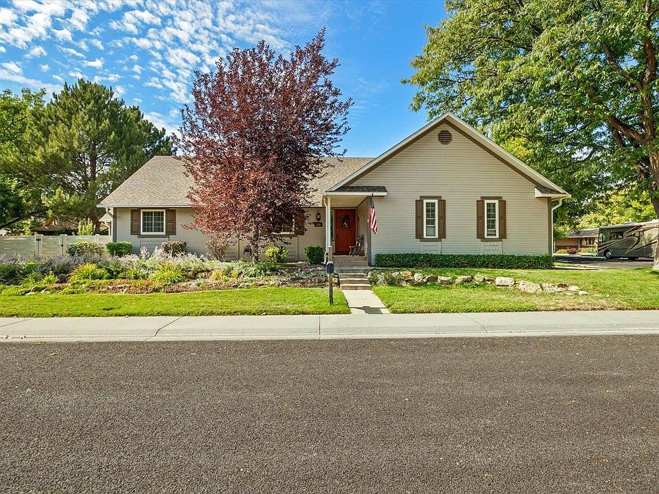 North-area ranch w/ a basement on a beautifully landscaped corner lot in a great neighborhood. This home has 5 bedrooms, 3 baths, 3 car garage, basement w/ a family room, fireplace, and a large primary bathroom. Solar is owned, roof is brand new. Located in Northridge Estates, this neighborhood is well established and everyone's favorite route for Halloween trick-or-treating and holiday lights. Just off Patterson Road and 1st Street makes this location convenient and close to shopping, restaurants, downtown, and St. Mary's Hospital. This home was remodeled in 2001, has ash hardwood floors, plantation shutters, and stainless steel kitchen appliances. The primary suite opens to patio, primary bath includes a large steam shower plus a walk-in closet. The basement includes a family room with pellet stove and outdoor sitting area, as well as a bedroom that can double a study with built-in shelving. A private, vine-covered patio in the back is the perfect place to sit and reflect on how happy you are that you purchased this wonderful home.
