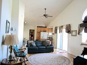 Beautiful duplexed stucco rancher adjacent to national park ~ metal roof with snow blades ~ open "greatroom" floorplan with vaulted ceilings, rounded corners & built in's ~ total main level living with unfinished basement for storage or expansion ~ 3 Trex decks ~ pellet stove in "greatroom" and stone fireplace outside ~ slab granite kitchen ~ tile & hardwood floors ~ french doors ~ 3rd bedroom is currently being used as a formal dining room ~ lushly landscaped, lawn areas, fenced garden, pines, aspen & sunshine ~