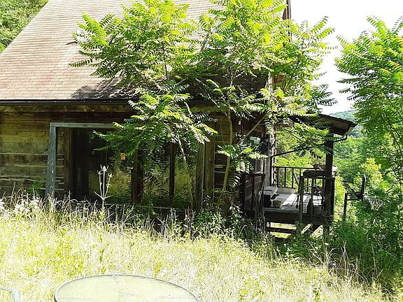H8 - PEEBLES - 11.396 mostly wooded acres with log cabin featuring 1 BR, 1 bath, living room, eat-in kitchen with range, basement with garage, propane furnace, county water, septic, hardwood floors, covered front porch, additional Amish cabin in the woods for visitors or hunters, 8x10 storage barn, very nice secluded location offering great hunting. $169,000.