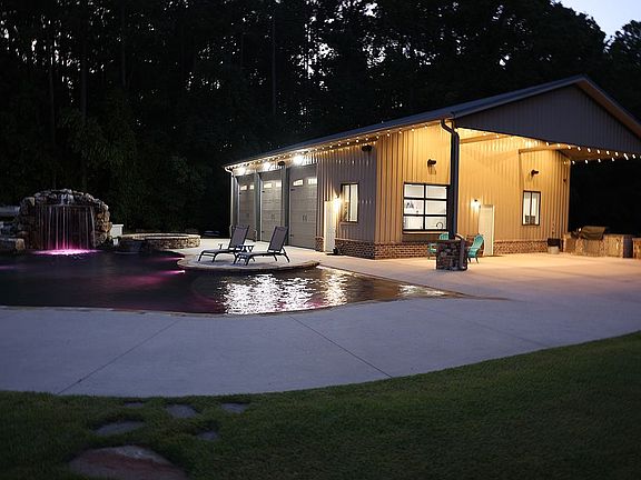 The Pool House is 36’x48’ (1728 sq ft.) enclosed building with a 12’x36’ (432 sq ft.) covered roof. Features include a kitchen with roll-up glass door for serving, full bath w/ stand up shower, custom finished walls and trim, walk in attic space, 3 roll-up doors with concrete access for boat or equipment, 200-amp service, indoor/outdoor lighting, tankless water heater installed August 2024, wi-fi, Sonos audio system inside and out, Luma camera system, fire pit, built-in outdoor kitchen to include a gas grill, x2 gas burners, and stainless steel doors & drawers