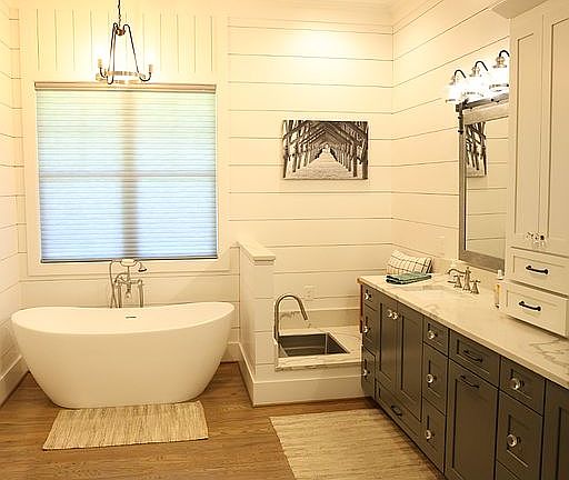 Home includes 4 bedrooms, 3.5 bathrooms, spacious laundry and mud room, walk-in pantry, 2 walk-in attic spaces with a large amount of storage and the crawl space, exterior walls and roof are all encapsulated with closed cell foam. All walls are wrapped with Cypress shiplap and floors with White Oak finished hardwoods. Large walk-in shower, Risen soaking tub, and an ample amount of space in master bath. All rooms and closets have custom built shelving and cabinets.