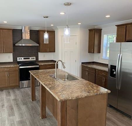 NEW CONSTRUCTION: JUST COMPLETED NOVEMBER 2023 - Beautiful 3 bedroom, 2 bath home sits on .73 acres in Vance County. This home features an open floor plan with a large living room that opens into a well-appointed eat-in kitchen with a large island, breakfast bar, stainless steel appliances, and dining area. Kitchen includes amazing cabinet and counter space, in addition to a walk-in-pantry. The primary bedroom has a large walk-in-closet. The primary bath includes dual sinks and a separate shower and bath. A second guest bath has a shower/tub combination. This property is 7.6 miles to Kerr Lake State Recreation Area, boat ramp and campground!
