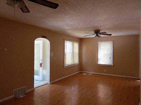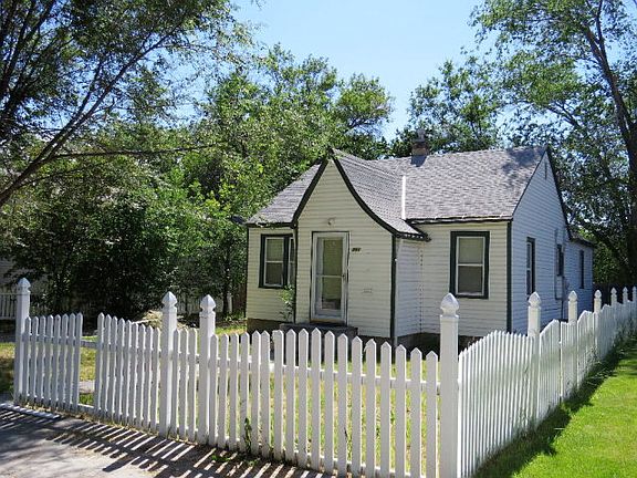 Cute Ranch style home with 3 bedrooms, with an oversized garage, and a white picket fence. Living room with laminate flooring and archways leading into the living room and kitchen. The kitchen has stainless steel appliances and side by side refrigerator. This home has vinyl exterior, vinyl windows, gas forced air and central air conditioning. Big fenced backyard with mature trees and a quite neighborhood.