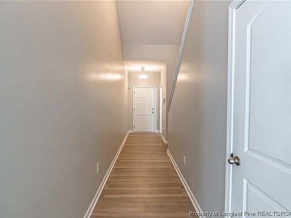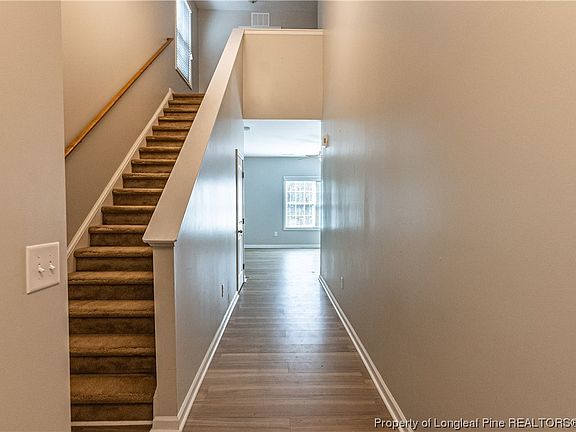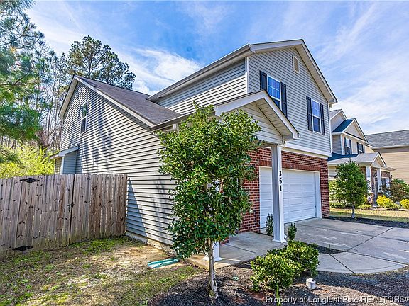 This adorable starter home is ready for you! When you walk in the front door, you are greeted with a grand 2 story foyer that has beautiful laminate light color flooring. Following that up is the open concept of the living room with gas log fireplace, lots of natural light and connects to the dining area and kitchen. The kitchen features ample countertop space with a bar area, lots of cabinets, stainless steel appliances and a pantry. The oversized garage is perfect for storing two vehicles and space leftover for storage. The privacy fenced backyard overlooks woods. The spacious laundry room is located upstairs close to the bedrooms. The primary bedroom features a trey ceiling, ceiling fans, double vanity, walk in closet and an oversized shower. The guest bathroom upstairs has ample countertop space along with storage. This home is also centrally located to ft Bragg, Fayetteville and even Sanford. Do not miss out on this fantastic opportunity.