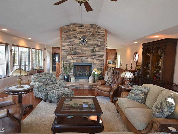 You can't beat the privacy and the view at this great Lake Hartwell property. The lot is an acre in size, and there are no other homes in site. That's because the property is surrounded on three sides by the lake and has 660' on the corps line. The point lot ensures a clear view of the main channel of the lake. There are multiple decks, patios and porches surrounding the house and the lakefront pavilion is fabulous. Inside there is a large gathering room with wood floors, a vaulted ceiling and a two-sided fireplace that can also be enjoyed from the adjacent kitchen. The main level also has a separate tv room with fireplace and a large laundry and utility area. There is a full bath on the main level. Upstairs there are three bedrooms and two full baths. The lower level has a large rec room, the garage and a large workshop.