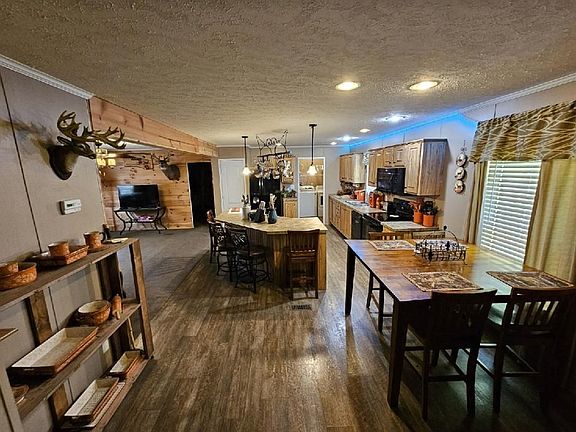 Two bedroom with bonus room, two bath double wide with lots of upgrades. This spacious home features large kitchen and bar. 2 living rooms and an amazing addition that boast a large stone fireplace. Covered back porch with hot tub. Tucked away private backyard.