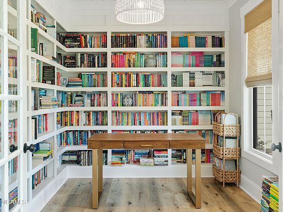 Upon entry you will be great by natural light, gorgeous wood beams, and glass French doors leading into the dining room/office space. The open great room features a gas fireplace with slate surround, stunning built in shelving, and an entry onto your private screened in porch.