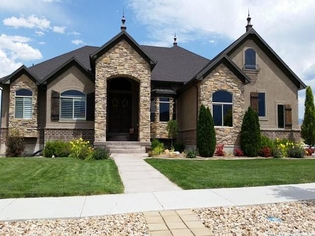 Gorgeous home! Ready to move in today! Open and inviting floor plan. Stone Fireplaces both up and down stairs. Large kitchen with granite counter tops. Double ovens. Travertine tile. Main floor laundry. Theater room. Beautiful bathrooms through out home. Exercise room. Kitchenette and Washer & Dryer stubbed in basement area. All exterior rockscaping included. Full landscaping. Beautiful yard! Full concrete RV pad that is 25x50.