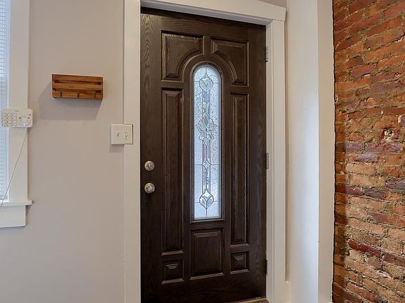 Welcome to this magnificent home that boasts a stunning blend of natural rustic and industrial elements, creating a truly inspiring living space! Step inside the "great room," a captivating focal point of the house, featuring an exposed brick wall, rustic wood shelf, and recessed lighting that exudes charm. Adding to the uniqueness is a one-of-a-kind bronze mason jar ceiling fan, perfectly complementing the rich faux wood, wide-plank floors. Enjoy the abundance of natural lighting flooding through sun-infusing windows, brightening up every corner of this delightful abode. The modern, sleek kitchen is a dream come true, complete with a stainless steel appliances, quality soft close cabinetry, and an artful finish with dove grey hues. The gleaming subway tile and natural grey, black, and white granite countertops are simply exquisite. Convenience meets style with a thoughtfully designed first-floor laundry/mudroom, making everyday tasks a breeze. Upstairs, retreat to the spacious and sunlit "owner's suite" boasting three bay windows that invite the outdoors in, providing a relaxing ambiance. The bathroom offers a refreshing space to start and end your day. You'll also find a second bedroom and a well-designed hall bathroom with tastefully appointed fixtures. Ascend to the third floor, where possibilities abound. Adding to the home's character and appeal, this versatile space can serve as an office, loft, studio, or a unique third bedroom with cool roof lines and an open shelf closet. This 1800s historic home is close to the city's exciting culture, entertainment, and amenities, and is a testament to modern elegance, as well as a tribute to the city's past.