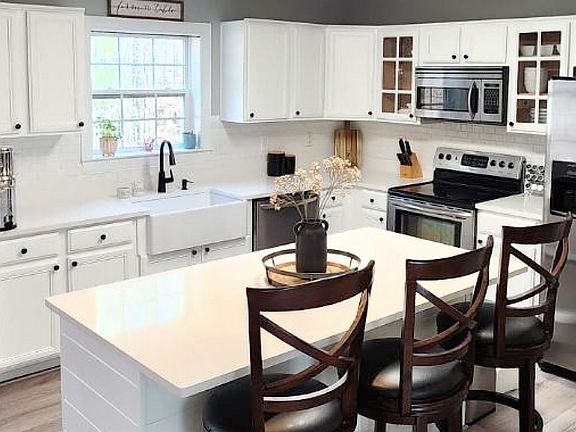 Beautiful home in Bostic. The kitchen has been updated with new quartz counter tops, large farmhouse sink and vinyl plank flooring that continues into the dining room and living room. The living room has a gas fire place that you will enjoy on cold winter nights. Off the living area is the master with en-suite and walk in closet.Outside has a large shed with electric.You will love the privacy of this home!