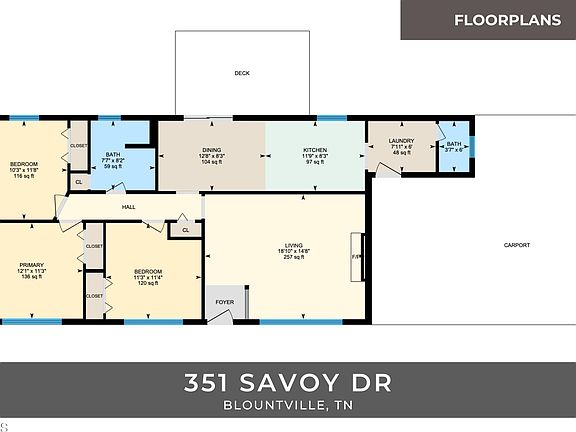 Looking for a turn key home in the heart of the TriCities? Don't miss this one! Completely remodeled, this one level home offers 3 large bedrooms, 1.5 bathrooms, and over 1,200+ sqft of thoughtfully designed living space. Showcasing tons of character and charm, this home offers features that include hardwood floors, custom built-ins, cedar lined closets, and a highly sought after floor plan with everything on one-level! Recently completed with a wide range of improvements, this home comes complete with a new kitchen offering quartz countertops, stainless steel appliances, and white shaker style cabinets, plus new bathrooms, lighting, doors & trim, fresh paint, blinds, and so much more! Promoting curb appeal and outdoor living, this picturesque home is highlighted with fresh landscaping, low maintenance brick exterior, concrete driveway, oversized carport, and a new deck overlooking the fenced in backyard. Strategically positioned in the heart of TriCities, this home is within a short drive to nearly everything with easy access on Hwy 394 and I-81. Nestled in the county, but minutes away from TriCities Airport, Hospital, the Pinnacle, HardRock casino, and so much more! Whether you're looking to upgrade, downsize, relocate, buy a second home, or possibly use for investment- this is the first time this home has ever been listed on the market and will not last long priced to sell at $279k. Owner/Agent. Call today to schedule your appointment! All information contained herein is deemed reliable but gathered from third party sources and is subject to buyers, or buyer's agents verification.