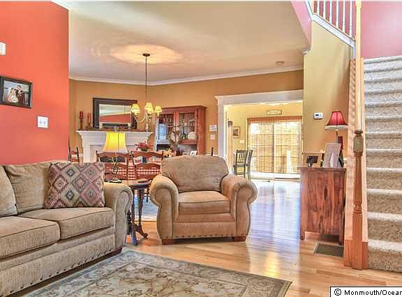 Beautiful, Like New, Upgraded Colonial will Wow You! Great Curb Appeal: Professional Landscaping, sprinklers in front & back. Front Porch. Spacious Open Floor Plan w/1,860 Sq Ft PLUS Full Finished Basement w/Custom Bar, Great Room & Access to the Fenced Yard! Hardwood floors in main living areas. 9' ceilings. Dining room with fireplace. Center island eat in kitchen w/42" cabinetry. Master suite w/spacious master bath. 2 Zone Heat & Air. Shows like a model home! Convenient to GSP & Shore Points.
