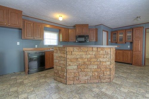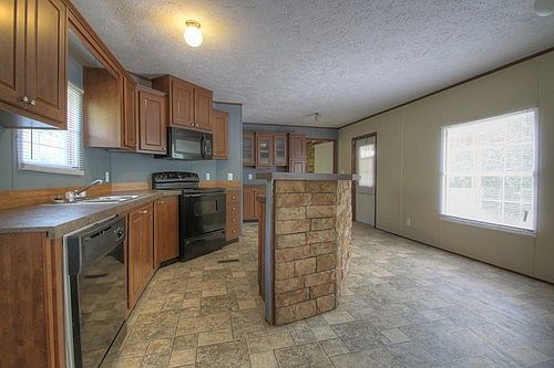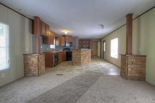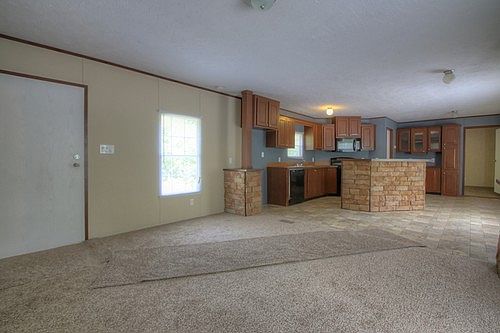 This is a 3 bedroom, 2 bath manufactured Ranch style home with eat-in kitchen & kitchen bar & equipped with a range, microwave and dishwasher. There is carpet and vinyl flooring.