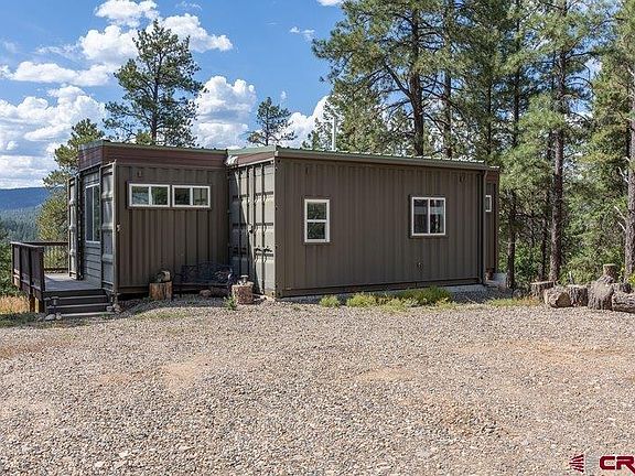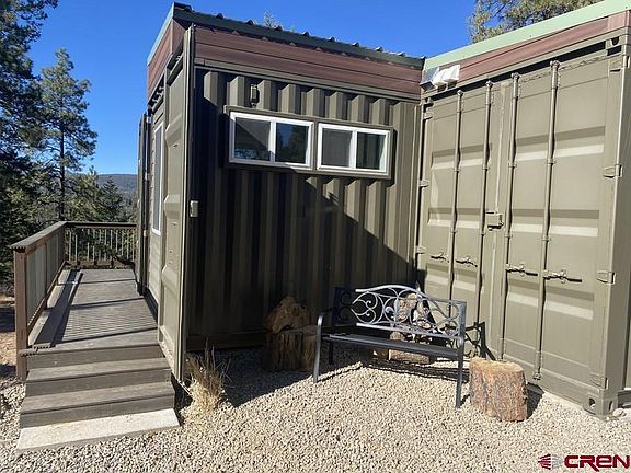 Brand NEW Contempory Container Home !!!! Exquisitely built and designed !!!!Completely move in ready, completely furnished, has a great well, large private deck with views of low mountains, nicely wooded lot, lovely kitchen with all new stainless steel appliances, granite counter tops in kitchen and bathroom, BRAND NEW water filtration system, NEW radiant in floor heating and radiant ceiling heat, tiled shower,trex decking, instant hot water and double pane low e windows., 3/4" oak planking throughout the floors. Access to a clean dry crawl space holds NEW filtration system. Nice separate storage shed for extra toys! This is a one of a kind property. Feel instanly at home in the mountains in this brand new container retreat. Peaceful living in the beautiful mountains of Pagosa Springs. Call now for your showing.