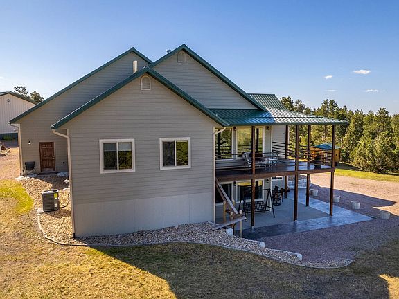 UNDER CONTRACT - TAKING BACK-UP OFFERS. 137-acres bordering Thunder Basin National Grasslands. Beautiful custom home in a hilltop venue with amazing views and privacy. Plenty of room for all your equipment and toys with this extensive set of outbuildings which includes a heated shop, barn with vet room, open-front equipment shed, two loafing sheds, greenhouse and garden shed. This one-owner home is the perfect retreat where family and friends will want to gather. Entertain easily with this open floor plan that includes two kitchens, covered wrap around deck, cement patio, two laundry rooms, main level living room and a sizable family room. It includes two oversized bedrooms, one located on each level. The inviting design has lots of natural light throughout, laminate wood flooring, high ceilings and large windows to enjoy the view. Constructed in 2012, the home has 1,794 square feet on the main level plus a full finished walk-out basement. A year-round residence or great vacation property within a 30-minute drive to Upton or Sundance.