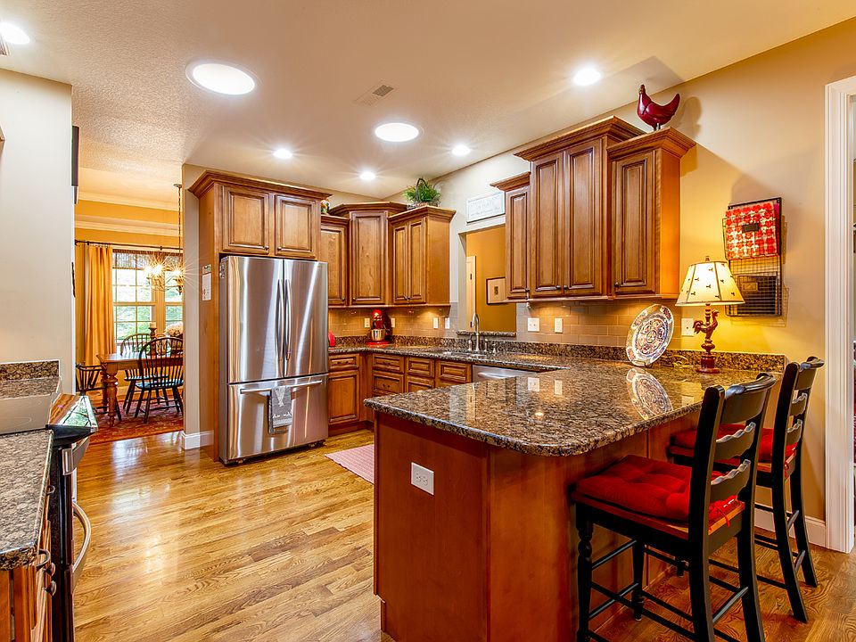 Only occupied since 2012.Shows like a model.Professionally landscaped corner lot w/ boulder accents.Hrdwd floors thruout, 9'ceilings, 2-zone H/A,2 decks. Greatrm has vaulted ceiling, stone FP & skylights.Upscale kitchen incl. custom cabinetry, granite counters, SS appl. 11x10 brkfst room. Lighted tray ceiling in DinRm. Master features tray ceiling, H/H WIC, jetted tub. Designer decor thruout. Impressive LL w/cork flrs,immense FamRm w/FP,off/BR+BA