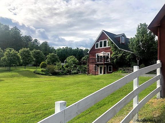 Custom built Cape Cod-1,670sf built in 2007. This modern country style home sits on a 5.77 acre corner lot, featuring a 2 story-2 car hay barn/garage with a 4 horse stall/stable attached, a 1 car shop/garage & lean-to. Horse pasture, paddocks, large inviting covered porch, freshly painted deck, lush landscape, including apple, pear, peach & lilac trees welcome you into a bright & sunny great room-vaulted ceiling home with exposed beams, 1st flr master ensuite with jetted tub & wide plank pine wood flrs, maple wood flrs throughout the rest of the home, & 2nd flr loft, & bedroom with full bath. The full walk-out basement has a workshop area, & room to expand living space. 1st floor laundry. Above ground pool included. Northway 30 min away, also located right across from Mettawee River Falls. 2020-06-30