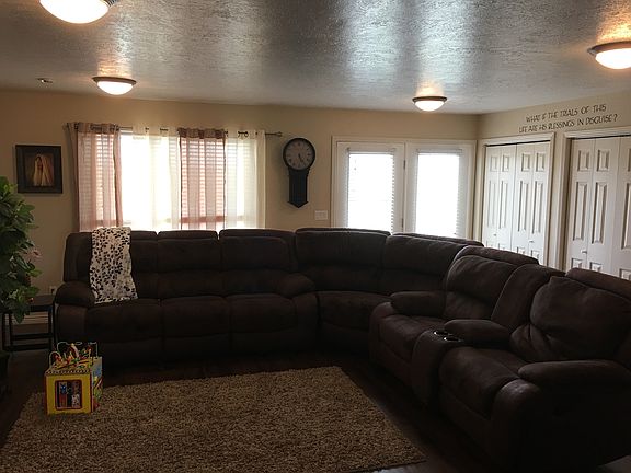 Homes like this don't come available very often in the Blackfoot area. With nearly 4600 square feet, 6 beds, 3.5 baths, and a main floor family room... this home has it all. The main level features laminate floors through the majority of it along with tile and a huge master suite. There is also an area that was once used as a hair salon with its own entrance and half bath. All the rooms in the house are plenty large and allow for just about any furniture configuration you can come up with. The upstairs offers two bedrooms, a jack-n-jill bathroom setup and large loft area that overlooks the living/dining area. The basement has an enormous family room, three additional bedrooms, a full bathroom and lots of storage space. The entire home sits on an acre that has an established lawn, mature trees, and an automatic sprinkler system.