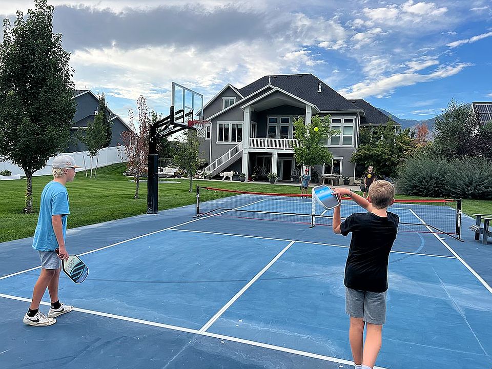 3 story, 6 bed (2 per floor), 4 bath, Dolby Atmos Theater Room, Kitchen in basement and backyard Pickleball/basketball sports court.