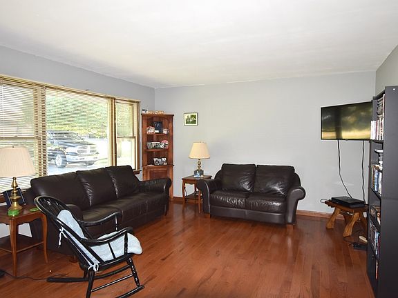 Move in ready ranch on a quiet street. This home would be perfect for starting out for downsizing. Freshly painted living room and bedrooms. Eat in kitchen with counter seating. Full basement with partially finished work area. Oversized two car garage. Newly stained deck off the back with fenced yard and a great countryside view. Being sold As- Is.