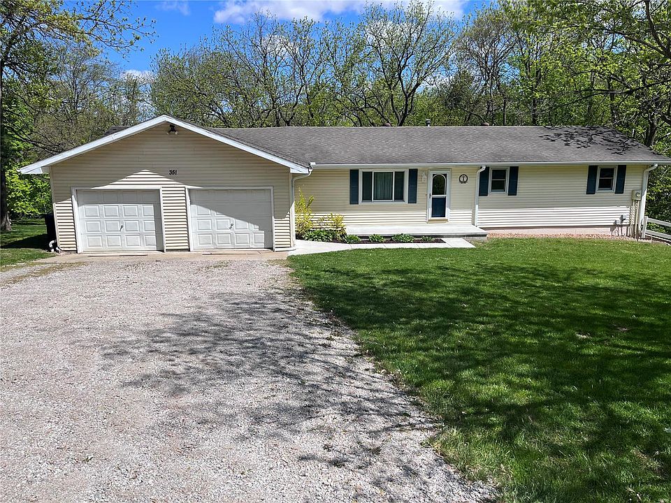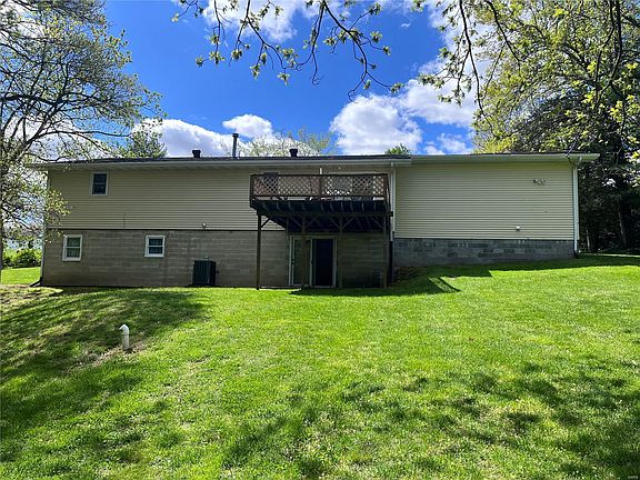 This property is in town and yet is still nestled in the timber! Great one story home with three bedrooms, one full bath and one half bath on the main floor, and another half bath in the walk-out basement. The basement also has a recreation room or bonus room that could be converted to another bedroom and has ingress and egress, and there is a built-in garage to store mowers and equipment or use as a shop. The furnace was replaced in 2022 and the central air unit was replaced in 2021. The view off of the deck or patio in the backyard is fantastic and there is always wildlife passing through. Don't miss your chance to own a piece of the country in town on almost an acre!