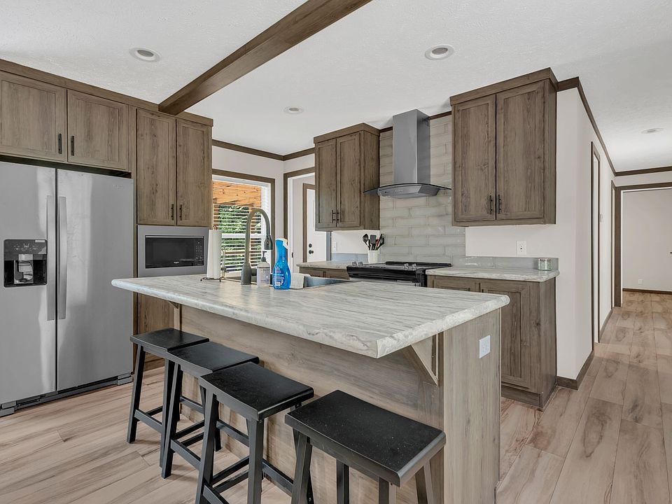 Set on 3.74 acres of peaceful countryside, this thoughtfully designed 3-bedroom, 2-bath home offers the perfect blend of modern comfort and outdoor living. Inside, you’ll find a bright open-concept kitchen and living area, a split-bedroom layout for added privacy, and stylish finishes throughout — including sleek cabinetry, modern appliances, and generous prep space.
