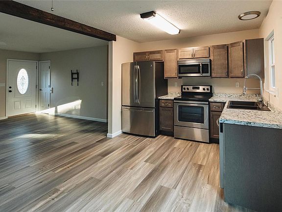 Discover this spectacular renovated home that combines modern luxury with comfort. The heart of the house boasts a fully renovated kitchen featuring stunning Formica countertops & modern stainless steel appliances, perfect for culinary enthusiasts. You'll enjoy the warmth of new luxury vinyl plank waterproof flooring, carpeted bdrms, fresh paint, sleek light fixtures and new windows throughout, accompanied by meticulous finishes! The finished basement offers a spacious recreation area, along with an additional versatile room ideal for an office or guest sleeping quarters, while the painted ceilings with exposed can lighting gives a lofty look to your lower level. With a partial rough-in for an additional bathroom, the possibilities are endless. Situated on a sizeable lot, this property features an amazing two-tier deck, perfect for entertaining or relaxing outdoors. The Rock Community Fire District Safety Inspection for occupancy is passed and this house is now move in ready!