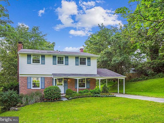 This charming Colonial in the coveted Chapel View neighborhood of Ellicott City is sited on a lovely lot with mature trees and picturesque views, on a quiet no thru street. An inviting covered front porch welcomes you to this home, highlighted by the beautiful new luxury vinyl tile flooring in the foyer, hallway, kitchen, and powder room. The spacious kitchen, complete with island and newer SS refrigerator, provides plenty of cabinet and counter space. Off the kitchen is a sun-drenched four season sunroom, with skylights, ceiling fan and bay window, the perfect space to curl up with a book and enjoy the views. A slider off the sunroom leads to a patio for outdoor dining. The expansive living/great room showcases gleaming hardwood floors, a cozy wood burning brick-surround fireplace and crown molding. Perfect for family gatherings, this light-filled great room has been freshly painted and features newer windows with exquisite views of the private wooded yard. The formal dining room features fresh paint, refinished hardwoods, chair rail, and crown molding. This level is completed with a powder room with newer storage vanity, and coat closet. The upper level provides four bedrooms, all with hardwoods, and plenty of closet space. The owner's en suite bathroom offers a step-in shower with ceramic tile flooring, and the second full bath has a tub/shower combo with newer storage vanity and sink. A large linen closet in the hallway provides ample storage space. The lower level includes a spacious recreation room with wood burning fireplace, walk-out slider, and huge storage room with work shop bench and pegboard. There is plenty of space for parking in the covered carport and long driveway. With newer windows throughout, custom hydrangeas, a shed for storing gardening and outdoor recreation items, and high-end Aura Benjamin Moore paint, this home has it all! Convenient location to shopping and dining, with Historic Ellicott City just around the corner. Home Warranty included! Sold AS IS.