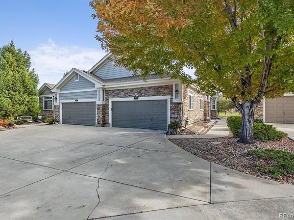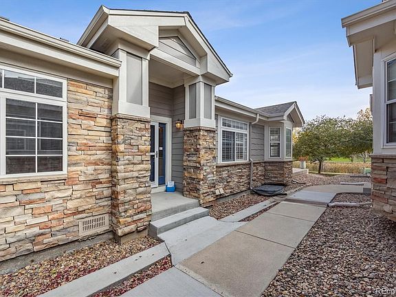 Highly desired maintenance free opportunity in The Broadlands. Main level features a primary suite and office/2nd bedroom with full bath. Gas fireplace in the open floor plan living room with a formal dining area and a breakfast nook off the kitchen. A 2 car attached garage and loads of natural lighting throughout. Full basement with a finished oversized bedroom #3 and full bath with several storage options. Huge bonus room ready for your creative finishing. HOA includes exterior, roof, grounds, snow removal, garbage AND activity center with gym and indoor pool with access to Broadlands community outdoor pools.