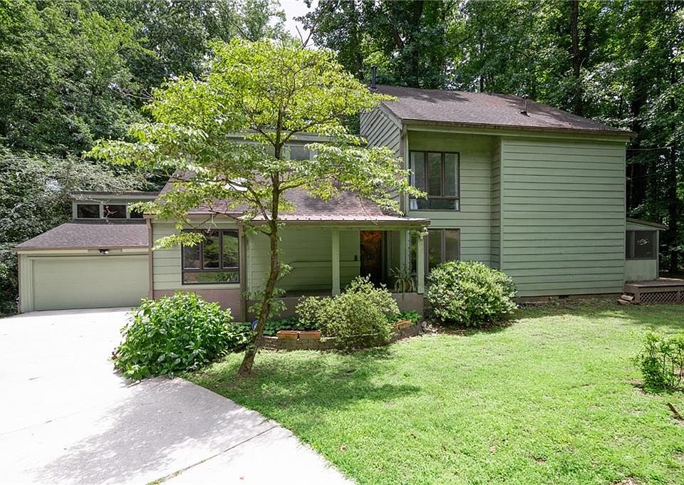 Comtemporary home with plenty of character and space. Located at the putting green/fairway of Pinetree Country Club. Bright light throughout from the many windows/skylights in the home. Vaulted ceilings on main in the living room and dining room. 2 story sun room with loft- main floor has bar/kitchenette and spiral staircase takes you to the brightly lit loft with a balcony overlooking the yard. This sun room adds an approximate 500 sq ft to the total square footage of the home, for approx. total of 2638 sq ft per Owner. Kitchen has wood Quakermade cabinets with Shelf Genie organizers. Dishwasher is 1.5 years old, disposal is 6 months old. Granite counters on island/by pantry and silestone by sink. Office on main with tall windows and powder room. Owners suite on main with walk in shower and screened in porch. 2nd floor boasts 2 bedrooms and a full bath. Spiral staircase on 2nd floor takes you to the 3rd floor and to a bright bedroom with bath & walk in closet. * Seller is replacing 3rd floor water heater on 7/3* 1st floor had majority of piping replace with Pex, rest of home is copper piping. Teak parquet flooring in dining room and teak flooring (can be sanded) in kitchen,living room, keeping room & hall on main. Porch/Deck space on 3 sides of the home. Great for relaxing and entertaining. Cypress and Cedar siding except for sections on backside of the home - was replaced with hardiplank. Owner purchased the home 40 years ago and when purchased was told the lot was +/- 1 acre. View of golf course- walk to Club and amenities and is optional to join. No HOA Close proximity to Kennesaw State (can walk to KSU) and easily accessible to I75.