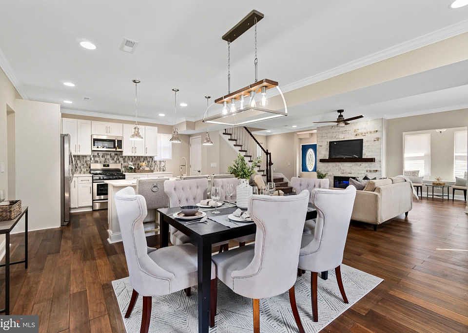 - Kitchen Island, Recessed Lighting, Dining Area, Crown Molding, Open Floorplan, Formal/Separate Dining Room, Master Bath(s), Breakfast Area, Upgraded Countertops, Stall Shower