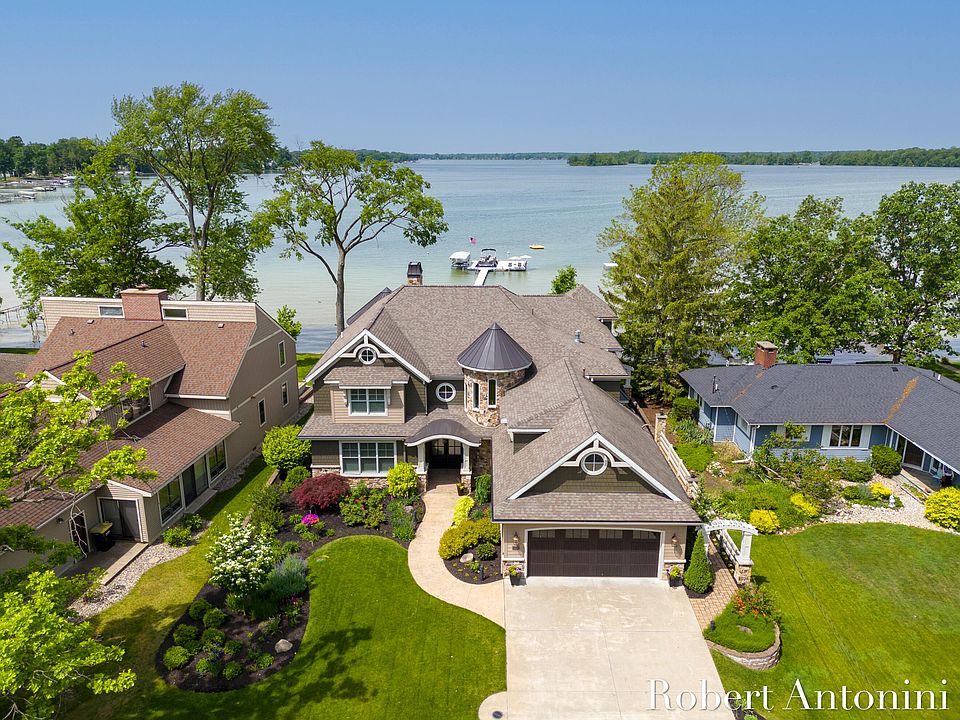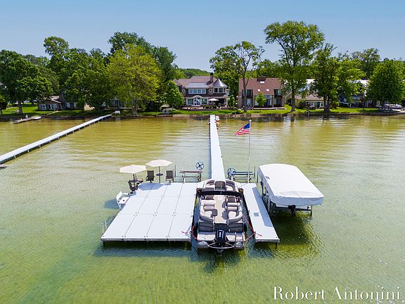 One of the truly premier properties on Gun Lake, this former Parade of Homes sensation provides all the pleasures of lakefront living; 75' lake frontage with a firm sandy beach, gorgeous sunsets, fabulous entertainment areas inside the home, outside, and on the new expansive dock complex.