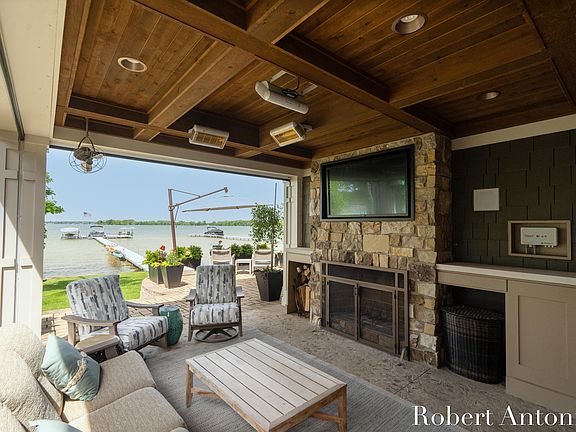 Unique in its magnificent design and craftsmanship, features of this home include a gourmet kitchen with 2'' quartz island and countertops, and a wood beam ceiling, a great room with fireplace, dramatic wood beam trusses, hand scraped hardwood flooring, and floor to ceiling windows to capture the beauty of the lake and abundant natural light. A must-see-to-believe lake facing office and a remarkable climate controlled wine cellar and entertainment lounge highlight the superior design and craftsmanship of the home.
