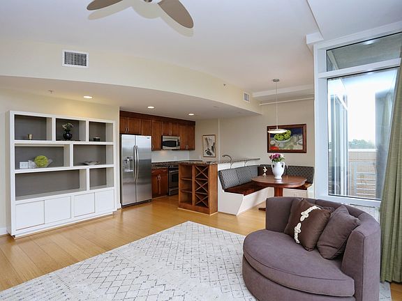 RARE and gorgeous 5th floor end unit with balcony overlooking the peaceful greens of Finley Golf Course. This two bedroom/two bathroom condo boasts upgraded 7.5" bamboo floors, upholstered banquette, floor to ceiling windows, custom woodwork, and open floor plan perfect for entertaining. Enjoy the state of the art gym, a roof top deck with an olympic-length salt water pool. Walk downstairs to restaurants, pharmacy, coffee shop, and grocery. Hiking & running trails across the street, and shopping. Located off HWY 54, minutes away from UNC & medical centers, and easy access to I-40 & RDU.