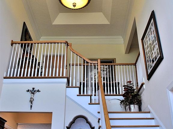 Custom Built, Brick Colonial home located on beautiful 1.36 acre flat lot in Auburn Hills Golf Community! Home has a fantastic master suite with its own sitting room with columns and fireplace with jetted tub, tiled shower, double sinks and huge WIC. The grand two story foyer features tray ceilings with extensive moldings. The second master suite upstairs has a private bath. The lower level is also finished with an exercise room, full bath with huge tiled shower, LR with a wet bar! The 3 car garage has an abundance of built in storage and a laundry sink. Relax on the rear deck! NO HOA fees. Must see!