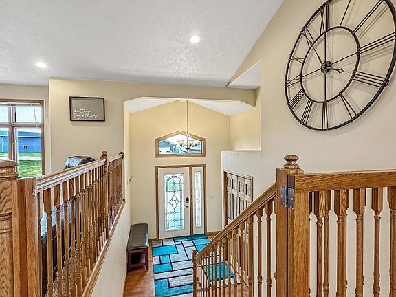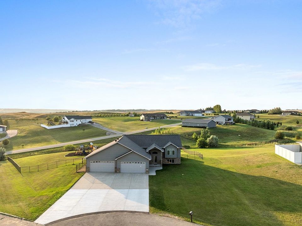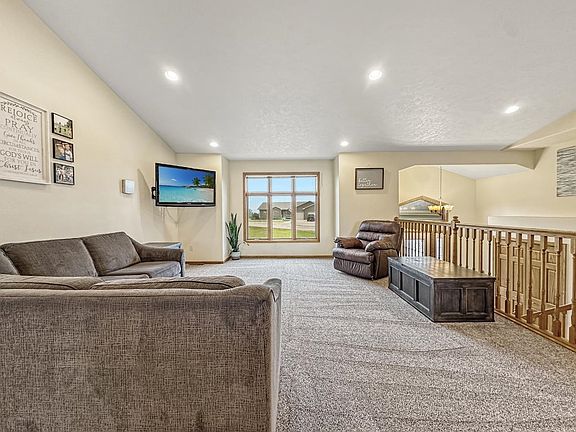 Welcome to 3510 Harmony Court, a stunning custom-built split-foyer home by Future Builders, perfectly situated in a quiet cul-de-sac on 2 acres of land, offering plenty of space to enjoy. The attached four-stall garage is a true highlight, fully finished with epoxy flooring, floor drains, and its own heating and air conditioning units-ideal for any hobbyist or car enthusiast. Step inside to an inviting open-concept kitchen, living, and dining area. The kitchen features custom oak cabinets with staggered heights, a gas range, a new high-end refrigerator, and an oversized island perfect for gatherings. The spacious living room is designed to accommodate various furniture arrangements and has been updated with fresh new carpet. On the main floor, you’ll find three bedrooms, including a primary retreat with an ensuite bathroom, extra cabinetry for storage, and a walk-in closet. The walkout lower level is equally impressive, offering a large family room with a cozy corner gas fireplace, a third bathroom, and two additional bedrooms. Outside, nearly an acre of the yard is fully fenced, providing a safe play area complete with a playground set and a private hot tub area off the deck-perfect for relaxation. Located within the Minot Public School District and with paved access right to your front door, this one-owner home is sure to impress even the most discerning buyers. Don’t miss your chance to make 3510 Harmony Court your new home!