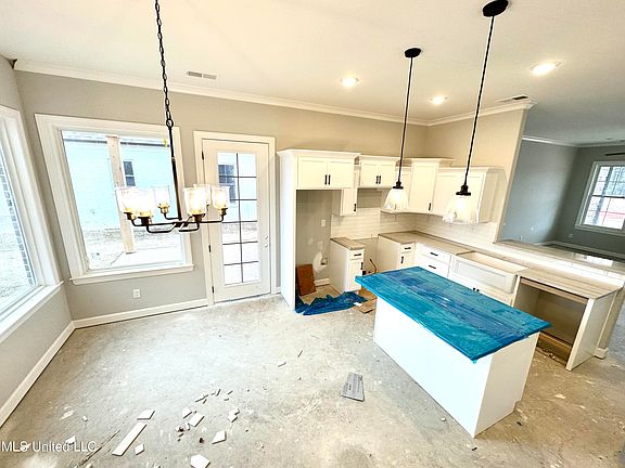 - Breakfast Bar, Ceiling Fan(s), Crown Molding, Kitchen Island, Open Floorplan, Primary Downstairs, Walk-In Closet(s)