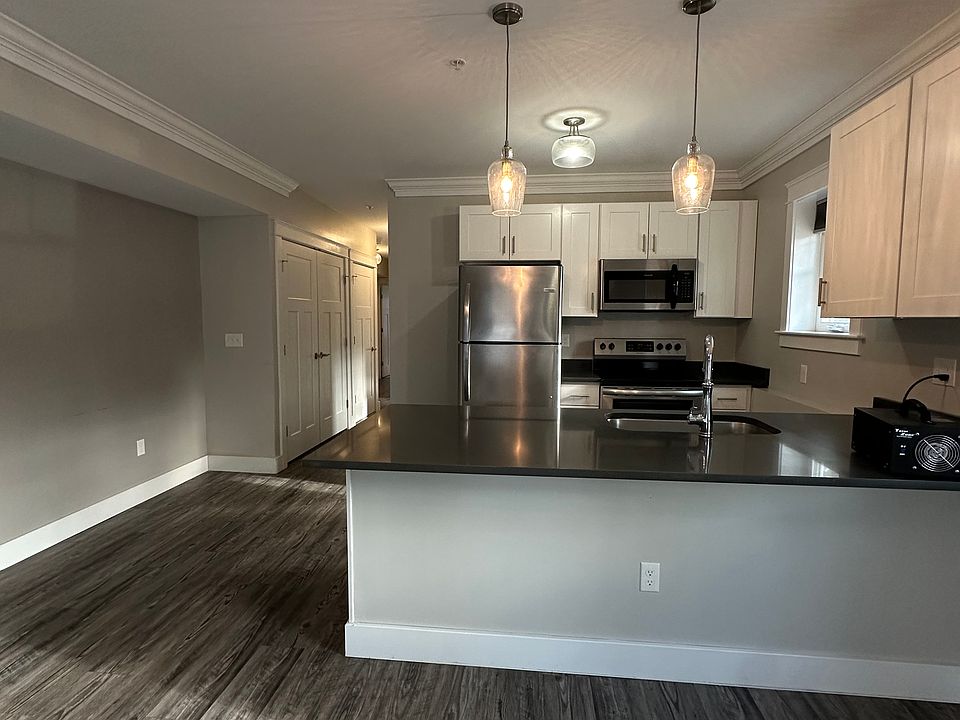 First floor, end unit opening at GATEWAY Luxury Apartments in Portsmouth, NH! Coming available February 1st. With nearly 1,000 sq ft of space, experience modern living in this 2 bedroom, 1 bathroom apartment. Very close drive to prestigious Downtown Portsmouth, and easy access to the highway, a commuter's dream! This unit has: -Central AC -2 Off-street parking spots -Large open floor plan -Modern kitchen with stainless appliances -Sliders that open to a private deck -Quartz countertops -High ceilings -Closet Space -Large windows There are washer/dryer hookups in the unit. Tenant pays utilities, gas heat, hot water, electric and water/sewer. Landlord plows/landscapes. Absolutely NO PETS, and NO SMOKING of any kind. Dumpster on-site for trash removal. Year lease required. Income restrictions apply-must make 3X income of monthly rent and minimum 640 credit score. PHOTOS ARE OF A SIMILAIR UNIT. Current unit is still tenant occupied.
