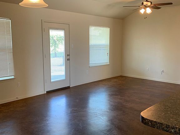 4 bedroom 2.25 bath home boasting ample living space! Through the entry - walk in to the living area with kitchen and dining off to the side. Kitchen features eat in dining area and a great amount of cabinet and counter space. Black appliances throughout the kitchen. Split floor plan with master suite featuring a walk in closet, marble double vanity, garden tub and separate shower. Spare bedrooms and hall bath at the other side of the home have great lighting and generous room sizes. Back yard is great for entertaining with an extended patio and fully fenced in yard. Home features stained concrete and will have upgraded tile floors in the bedrooms after the remodel!
