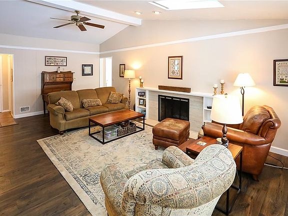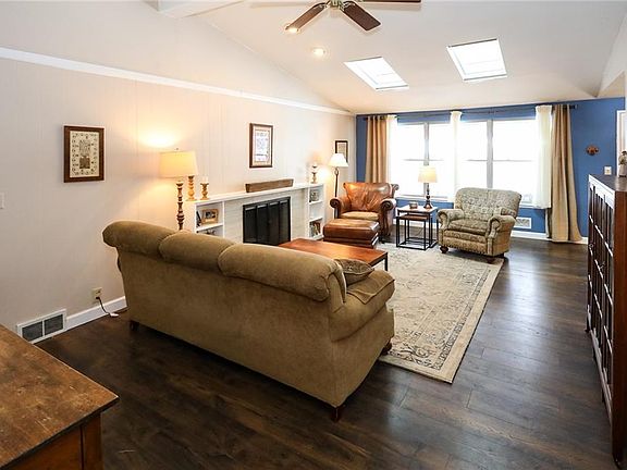 This 3-bedroom ranch with partly finished BASEMENT is ready to move in. Walk into a large, VAULTED living room brightened by SKYLIGHTS and a wood burning FIREPLACE with new surround. Roomy kitchen/dining area is complete with newer SS stove & built-in seating with extra storage. All KITCHEN APPLIANCES STAY. HARDWOODS & laminates throughout the main floor! Bathrooms boast updated fixtures/vanities and a laundry shoot. CEILING FANS in all bedrooms & living room. Step down to the basement & discover a huge family room wired for surround sound, bonus rooms, laundry & UTILITY SINK. Relax on the SCREENED PORCH or walk along mature perennials & RAISED GARDEN BEDS in the FENCED backyard. Brand NEW FURNACE & sump pump. Water heater replaced in 2016.