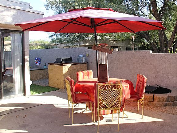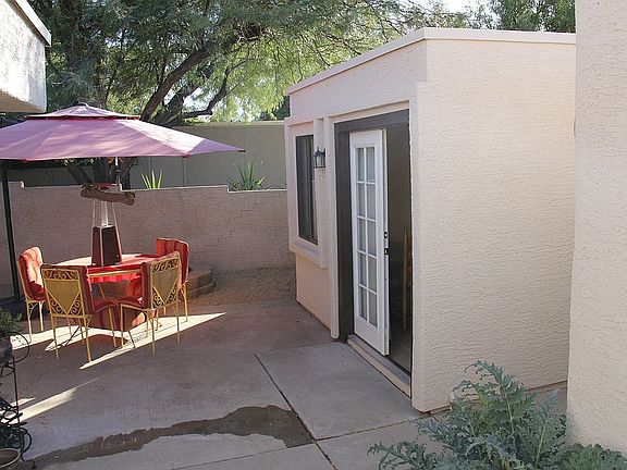 * The delightful courtyard invites you to find 3 bedroom townhouse with a detached casita. Updated kitchen with gray soft close cabinets, stainless appliances, and granite countertops. Open concept great room with lovely fireplace. Loads of windows for great lighting. Gated courtyard and private back yard with bbq, garden area and dog run. Casita could be a home office, studio, exercise center or in home nurse housing. Main house has been updated to current standards, split bedroom plan, lots of storage. Walk to Rillito Riverwalk Park, shopping and bus lines.
