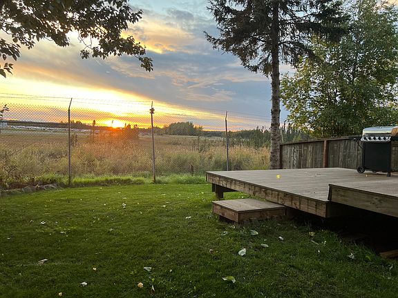 Furnished with comfortable furniture ,2 bedrooms ,master bedroom has king size foam bed,second bedroom queen foam bed.Upstairs one full bath ,downstairs second restroom ,house was fully refreshed With new appliances ,floor ,carpet,painted ,owned by non smoke family ,located in a beautiful and friendly neighborhood ,offering easy and quick access to coastal trail,point woronzof ,airport ,minutes away from public schools and downtown , next to airport .The location offers best sunset in AK will never miss one,night time multicolor airport lights will transform back yard view in a Vegas filling only you need is to have your preferred drink handy ,prospective tenants must pass basic Zillow background check . Tenant pays all utilities .