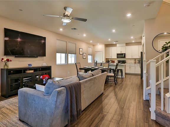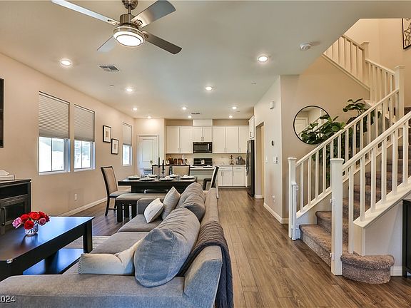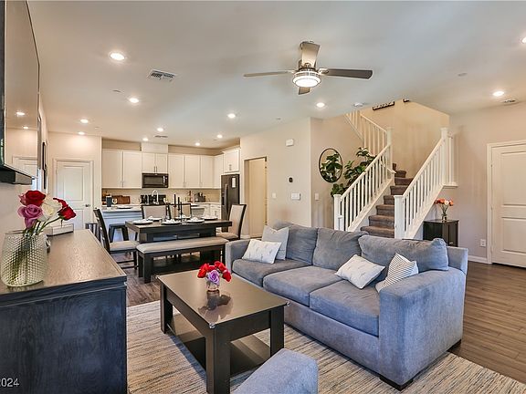 Charming Inspirada townhome with numerous upgrades! End unit with 4 bedrooms and 2.5 bathrooms has an abundance of natural light. You are immediately greeted by beautiful vinyl plank flooring. Kitchen is equipped with stainless steel appliances, quartz countertops, and ample cabinet space. Upstairs the large primary suite provides for a great retreat. This home provides comfort and the opportunity to call one of the most vibrant communities in the city HOME! Do not miss this opportunity.