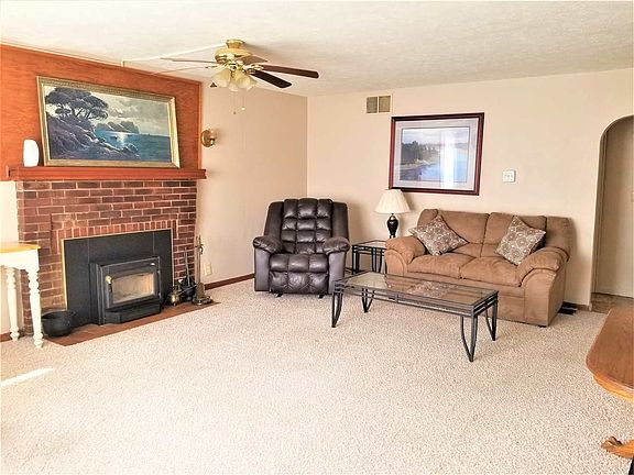 CUTE HOME * NEW POLE BARN * GARAGES TOO! Neat 2 bedroom, 1 bathroom, 944 sf house on 0.295 acres. Features spacious living room, fireplace with NEW wood burning insert and stainless steel pipes, original hardwood under the carpet, insulated attached garage, NEW 40x30 pole barn, and a 21x18 outbuilding. Also, NEW kitchen cabinets, water lines, paint, ceiling fans, walk in shower, some wiring and carpet, HVAC (2016) and roof. County property with city utilities close to VA hospital. IMMEDIATE POSSESSION.