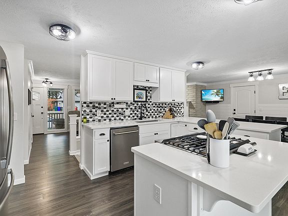 Move-in ready, Ponderosa area 1975 rancher with walk-out, finished daylight basement on 0.28 acres includes 5 bed/2.75 bath, 3,394 total sq/ft including high-efficiency gas furnace, central A/C and 2+ car attached 23’ x 20’ garage/shop minutes away from schools, grocery, restaurants and Dishman Hills Park/Iller Creek Conservation areas! Remodeled kitchen features white cabinets, SS appliances, quartz counters, tile backsplash, eating space, pantry and kitchen island with gas stove/oven connecting to living/dining areas, perfect for private hangouts or entertaining guests. NEW LVP floors on main floor. Main floor primary bed has walk-in closet and remodeled bath with soaking tub. Lower-level features 2 beds, FULL bath, utility, laundry/rec, bonus and 2nd living rooms with separate entrance (rent/Airbnb potential). Oversized, level, fully fenced backyard with sprinklers, side gate access, expansive composite deck with mountain views, private patio and garden area. NEW roof & exterior paint (2024). Tour TODAY!